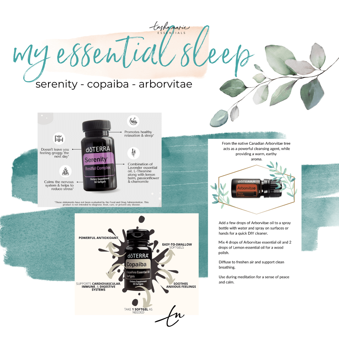> About 20 minutes before bed, we (my kids and I) will take 1-2 serenity capsules (add a copaiba and see how it goes for you. If I add a copaiba capsule, I only take one serenity capsule. My kids don't take a copaiba at night).