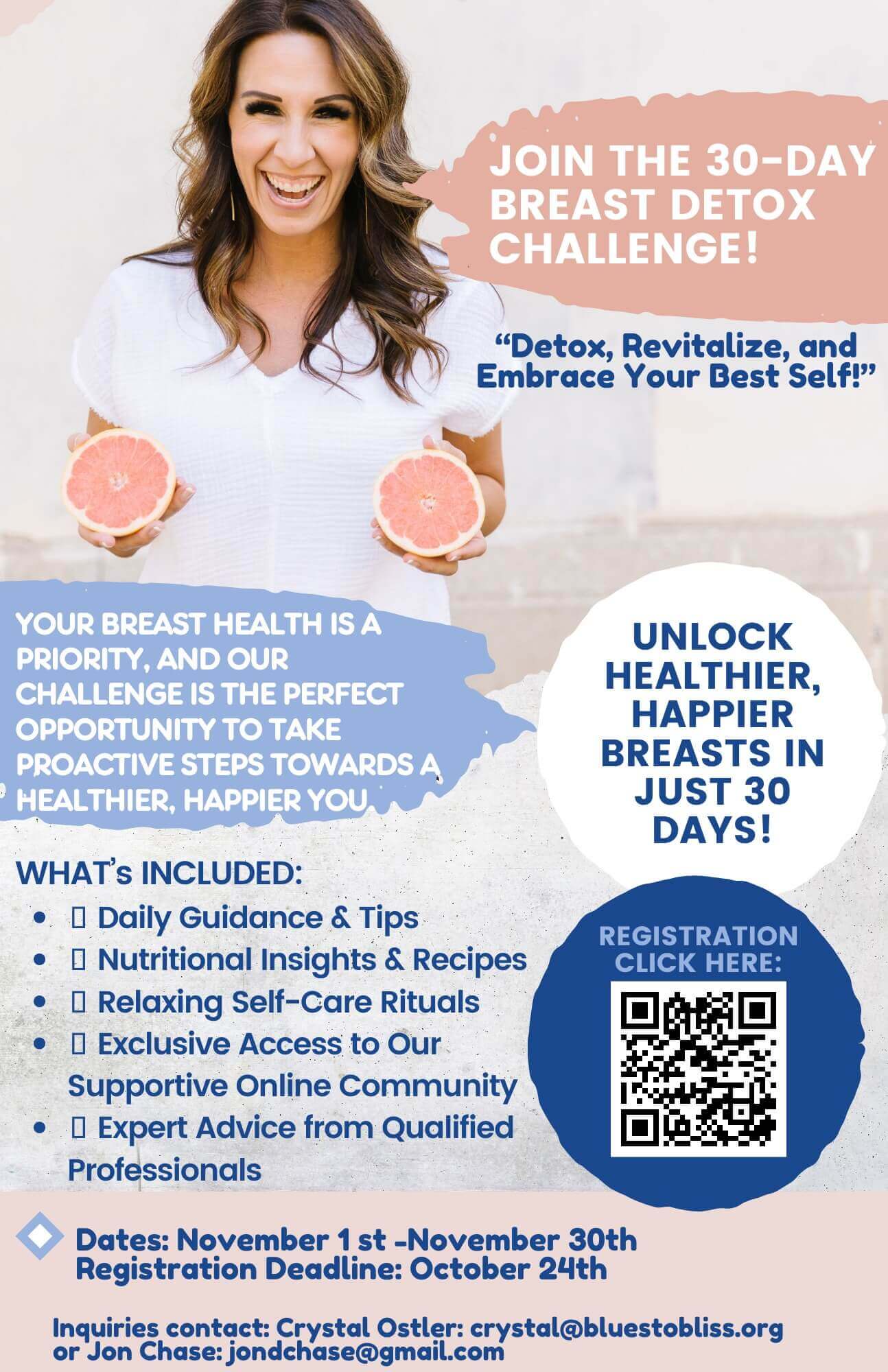 I am excited to introduce you to Crystal Ostler and Jon Chase! They are hosting a new and improved BREAST DETOX CHALLENGE throughout November. It's going to be amazing! I already have my spot reserved - join me!