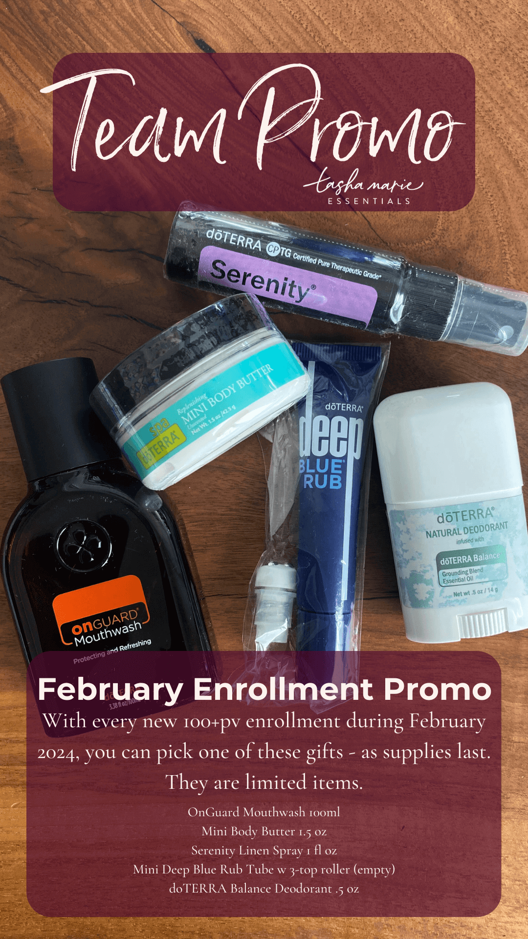 AND for our team promo, when you enroll with one of our Wellness Advocates, you will get your choice of one of these great products to try out! They are limited and first come, first serve. Once they are gone, they are gone! Check-in with your friend who has introduced you to the power of doTERRA for details ----