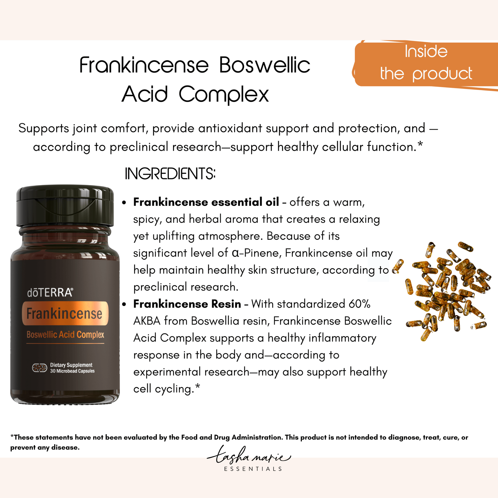 doTERRA’s Frankincense Boswellic Acid Complex, a scientifically formulated blend designed to support healthy cellular function, joint comfort, and overall vitality.*